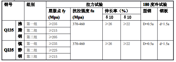 Q235鋼材分組尺寸及機械性能