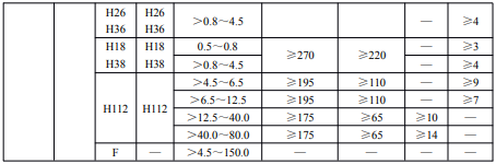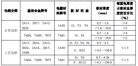 ②厚度小于等于0.7mm經鹽浴爐生產的退火板材,只能供應寬度小于或等于1200mm,長度小于或等于4000mm的板材。包覆層需包鋁的板材應進行雙面包覆,其包覆材料牌號及軋制后的包覆層厚度應符合表3的規定。