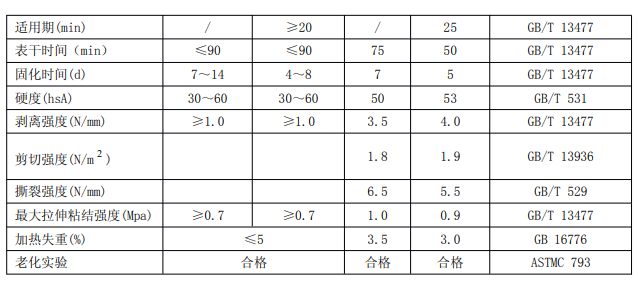 以上三種密封膠僅用于中空玻璃第二道密封膠,它們與硅酮結(jié)構(gòu)(建筑)密封膠性相容,可配套使用。即凡是使用硅酮密封膠作中空玻璃結(jié)構(gòu)性玻璃裝配或防風(fēng)雨填縫的中空玻璃必須使用中空玻璃二道密封膠作第二道密封膠,使用其他密封膠必須作相容性試驗。