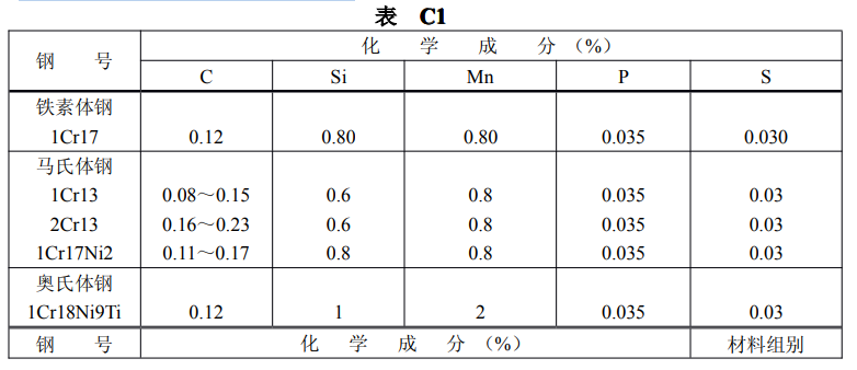 C.1 本附錄給出了可用于緊固件的不銹鋼材料牌號及化學成分,供設計和生產中參考。