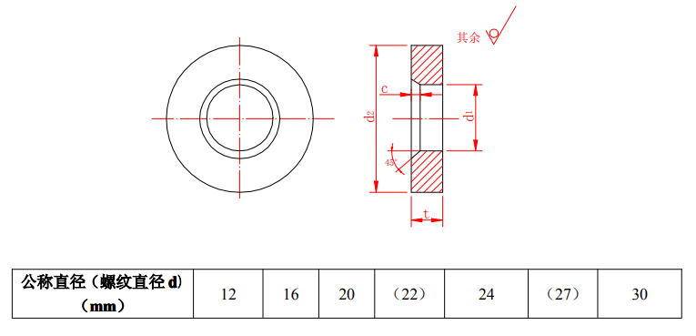 鋼結構用高強度墊圈的規格、尺寸及重量
