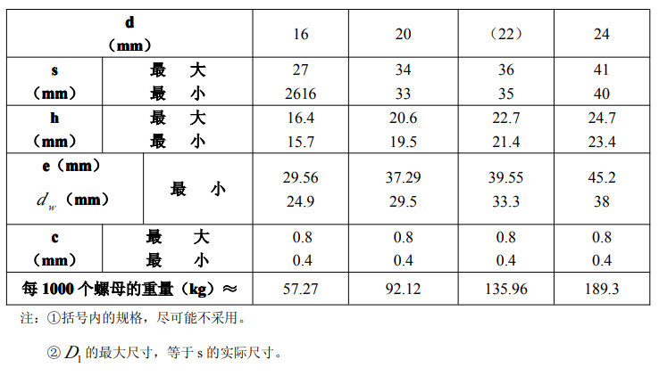 鋼結構用扭剪高強度螺母的規格、尺寸及重量